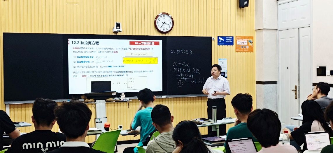 第一个法宝是科学思维模式的贯穿应用。无论是常规课程还是讨论课,教学过程均以科学思维模式引领学生探索量子力学的奥秘,这一模式主要围绕四个关键维度展开。其一为科学规律的总结,从经典物理实验现象与量子世界观测结果的对比入手,引导学生归纳波粒二象性、不确定性原理等核心规律的本质特征,通过梳理现象间的内在联系,帮助学生建立对量子规律的系统性认知。其二是数学语言的表达,针对薛定谔方程、波函数等抽象概念,着重演示如何将物理规律转化为矩阵力学、波动方程等数学形式,通过推导过程解析量子态描述、概率诠释等核心思想的数学表达逻辑,让深奥的量子规律变得可量化、可推演。其三是科学规律的验证,结合斯特恩-盖拉赫实验、电子双缝干涉等经典案例,详细阐释理论预测与实验结果的对应关系,引导学生理解科学假说需经实验验证的严谨性,培养“理论推演——实验验证”的闭环思维。其四是发现新的科学问题,结合前沿研究动态,提出 “如何利用量子相位描述铁电相变问题”“在开发系统中,基于厄米量子力学的理论将失效,该如何引入非厄米修正完善理论模型” 等开放性问题,激发学生的探究欲望。这种引导式讨论授课模式,不仅让学生在常规课堂中深度参与知识构建,更为讨论课中同学们独立开展讨论提供了重要的方法论借鉴与科学思维指引。