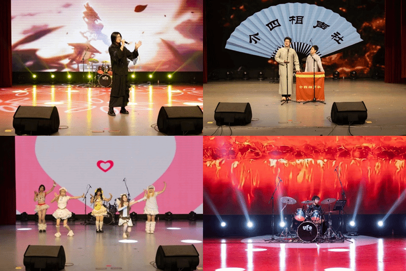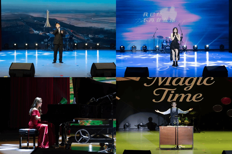燃爆全场的演出随即开始。草地音乐社的《What makes you beautiful》打开全场的“氛围开关”;舞蹈《What is love》的节拍点燃全场激情;四相声社的《你好,大学》成了“全场笑点制造机”——早八的课与赖床的我,让师生笑作一团,又不乏启迪心灵;魔术《纸牌奇迹》的指尖戏法,让全场屏住呼吸,目光聚焦于聚光灯下变幻莫测纸牌;架子鼓与克斯的合奏,师生沉浸在乐器与灵魂的共鸣,每一个鼓点,每一个音符都在空气中跳跃,将现场氛围推向高潮;一曲钢琴独奏,高雅不失风度,真情随手指跳动而流出,陶醉了多少师生慷慨激昂的朗诵,也成功拉动听众们的情绪,师生们仿佛切实迈入了那个伤感动人的故事之中。紧张又激动抽奖互动更是将晚会热烈氛围一次又一次推向高潮