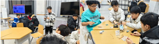 实操训练环节分阶段开展。首先组织新生进行万能板电路板焊接练习,掌握焊锡量控制、焊点成型等基础技巧;再逐步过渡至贴片电路板元器件焊接,重点训练精细操作能力。俱乐部骨干以分组指导的形式,对参训学生进行一对一技术帮扶,针对焊接温度把控、元器件定位等常见问题现场示范纠正,确保每位学生都能精准掌握操作要领,在学长们的指导下,参训学生熟练掌握了焊接过程中的种种细节和技巧。