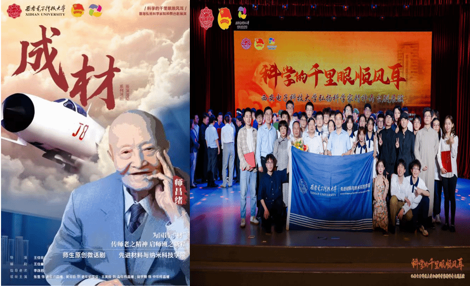 “为国家作出贡献,是人生的第一要义!”在西电小剧场的舞台上,科学家主题话剧《成材》的演出正进入高潮,铿锵有力的台词回荡在剧场,深深烙印在每一位观众心中。学生通过角色扮演、场景还原等方式,沉浸式感悟科学家精神。“在《成材》的排练中,我深切体会师昌绪先生的赤诚,每一句台词、每一个动作都是对科学家精神的践行,这份精神力量让我明确了学习的意义。”2023级师昌绪班学生孟冬坤道出师班学子的心声。