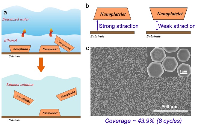 灵感永远是给有准备的人。一次午餐,刘书海看着餐桌上的碗,发现氧化锌纳米片与碗有一个共同点,那就是都有一个端面较大,一个端面较小。倘若将两个碗一个正立,一个倒扣,那么当一阵强风吹过时,处于正立状态的碗肯定更容易被风带走,而留下倒扣的碗。想到这里,他产生了一个实验方案:使用乙醇和水反复冲洗沉积在硅片上的氧化锌纳米片粉末,是不是就会留下取向一致的纳米片呢?(见图上, 引自Adv. Mater. 2017. 1606346.)后来这个大胆的尝试成功了,尽管原理并非如此简单,但这次类比想象却是成功的。