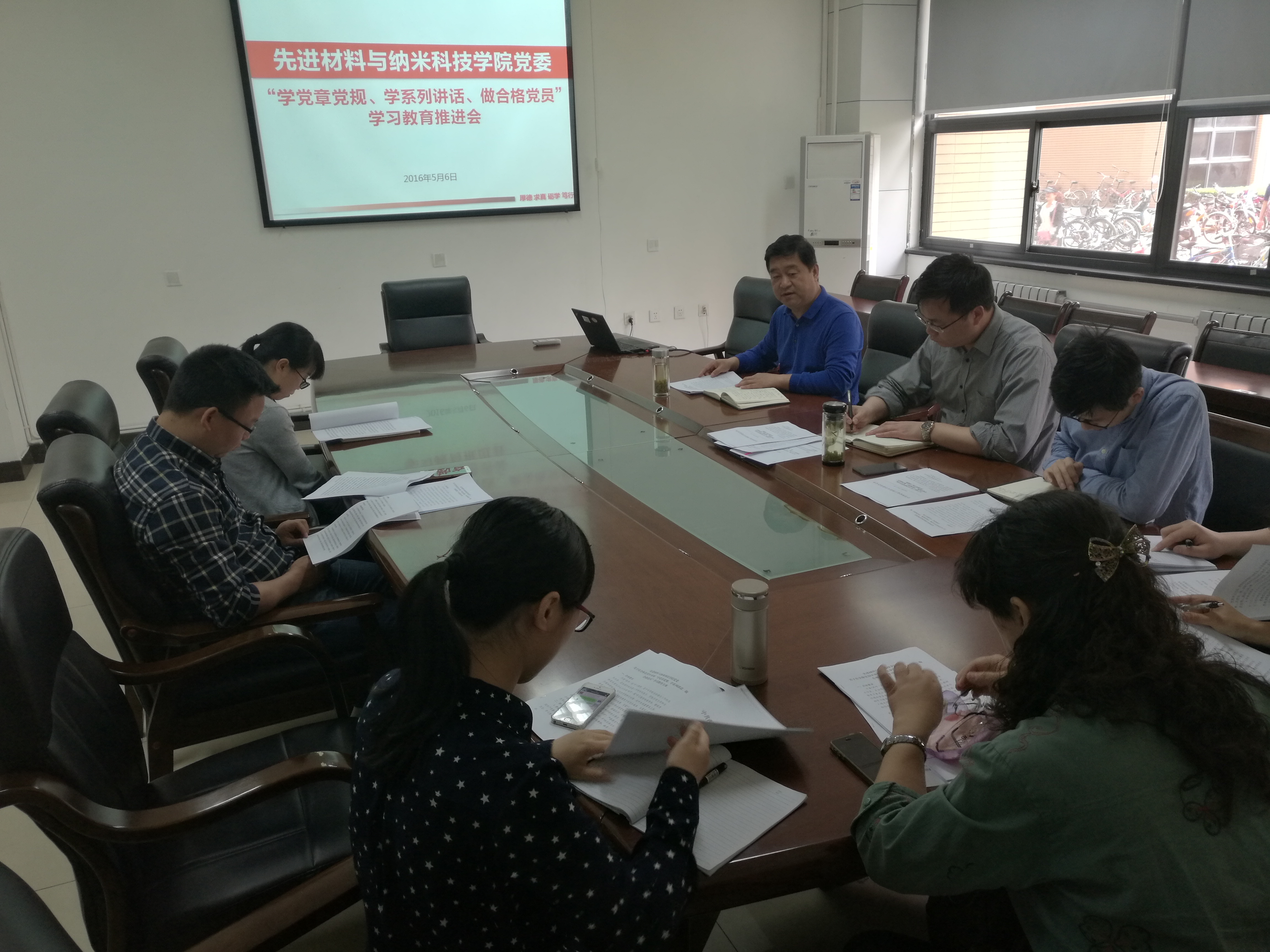 党委关于在全体党员中开展“学党章党规、学系列讲话、做合格党员”学习教育方案》,对学院“两学一做”学习教育工作进行了部署。他指出,开展“两学一做”学习教育,是今年学校党的建设工作的龙头任务,是加强学校党建工作的有力抓手。学院各党支部和全体党员要充分认识开展“两学一做”学习教育的重要性,增强责任感和使命感,要从思想上、组织上、行为上与党中央保持一致,把全面从严治党要求落实到基层党建各个方面。