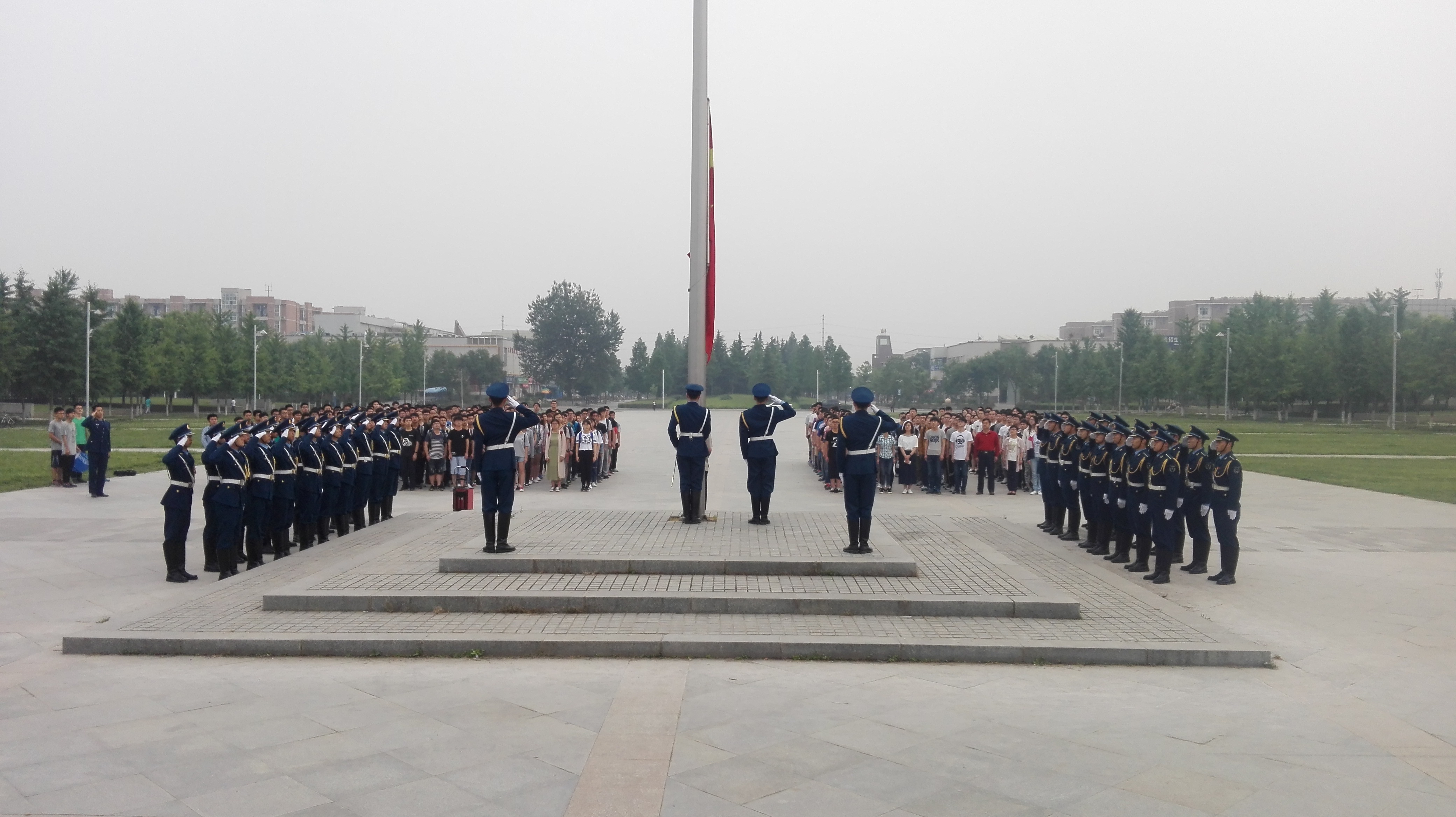 党委书记黄伟、团委书记刘男、各年级辅导员以及全院近400名学生参加了此次升旗仪式。