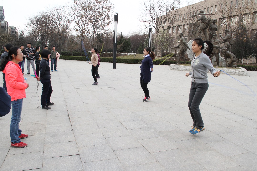 工会于3月6下午在南校区长征广场举行了教职工跳绳、踢毽子比赛。校工会女工委主任杨景、院长助理梁燕萍应邀参加了本次活动。