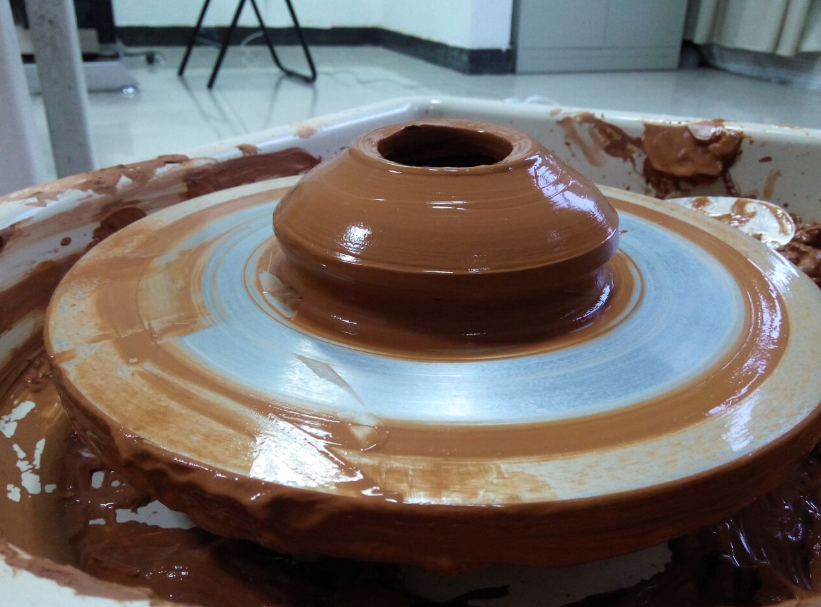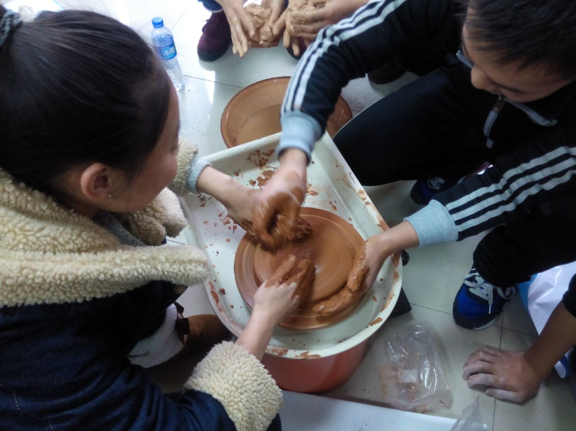 活动一开始,大家观看了陶瓷工艺品的制作视频,并就其中相关环节进行学习讨论;随后大家开始了亲手制作活动。摞泥:买来的陶泥并不能立即使用,要将其分割开来,摞成柱状;拉坯:将摞好的陶泥放入大转盘内,通过旋转转盘,用手和拉坯工具,将瓷泥拉成瓷坯;印模:拉好的瓷坯只是一个雏形,还需要根据要做的形状选取不同的印模将瓷坯印成各种不同的形状;修坯:刚印好的毛坯厚薄不均,通过修坯这一工序将印好的坯修刮整齐和匀称。经过一步步的尝试,虽然有失败,但最终成功制作出了一件陶瓷罐的成品。