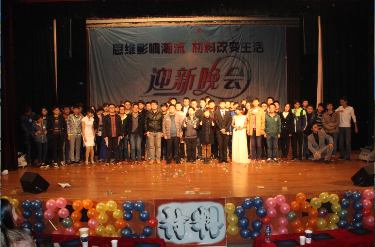 主办“思维影响潮流,材料改变生活”为主题的大型迎新文艺晚会在南校区大学生活动中心小剧场成功举办。院党委书记黄伟、团委书记刘男等学院老师、其他学院特邀嘉宾以及全体15级同学参加了此次晚会。