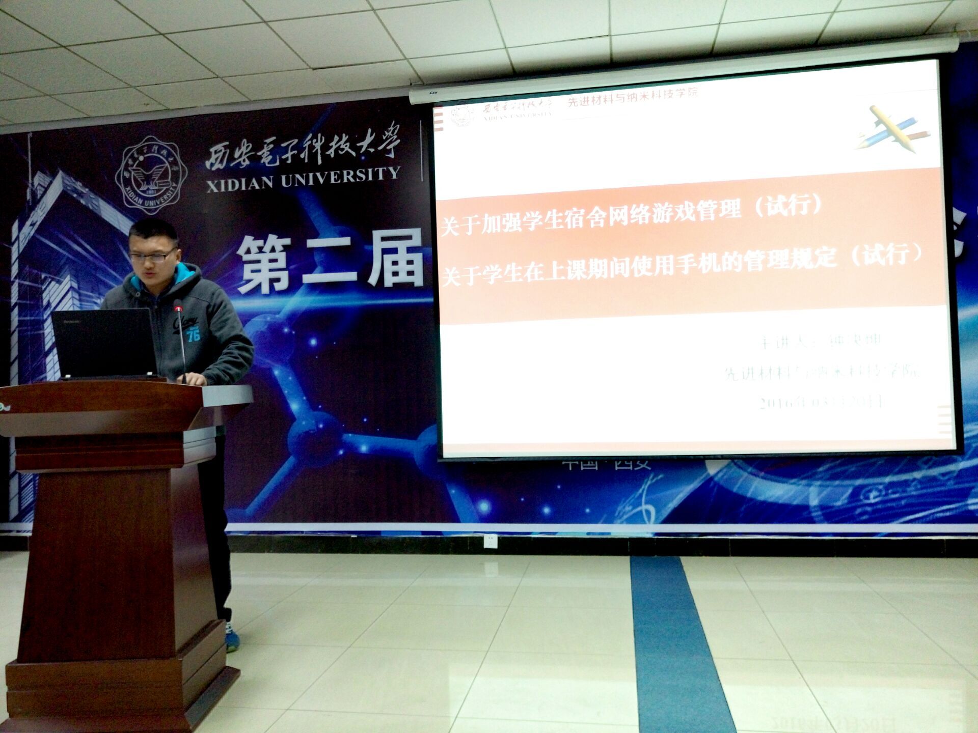 学生宿舍使用电脑和课堂使用手机的情况做了简单说明。这两个文件旨在进一步弘扬优良校风学风,引导学生严责遵守“一日生活制度”,自觉养成良好的学习生活习惯,积极营造“秩序井然、学风浓郁的”校园氛围。