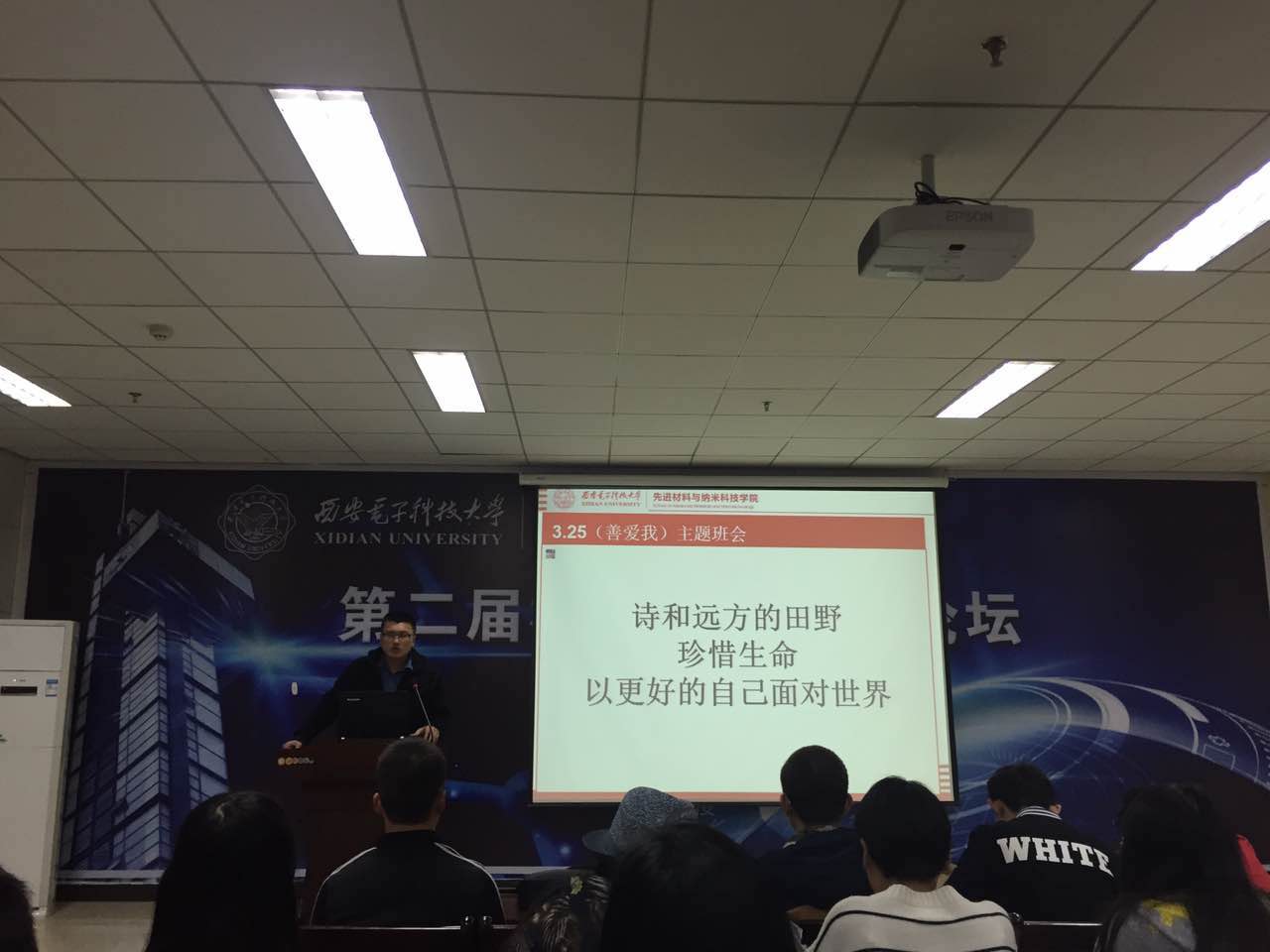 于3月25日晚七点召开“诗和远方的田野”主题班会。此次班会由材料院辅导员钟决坤老师主持,全体材料院同学参加了会议。