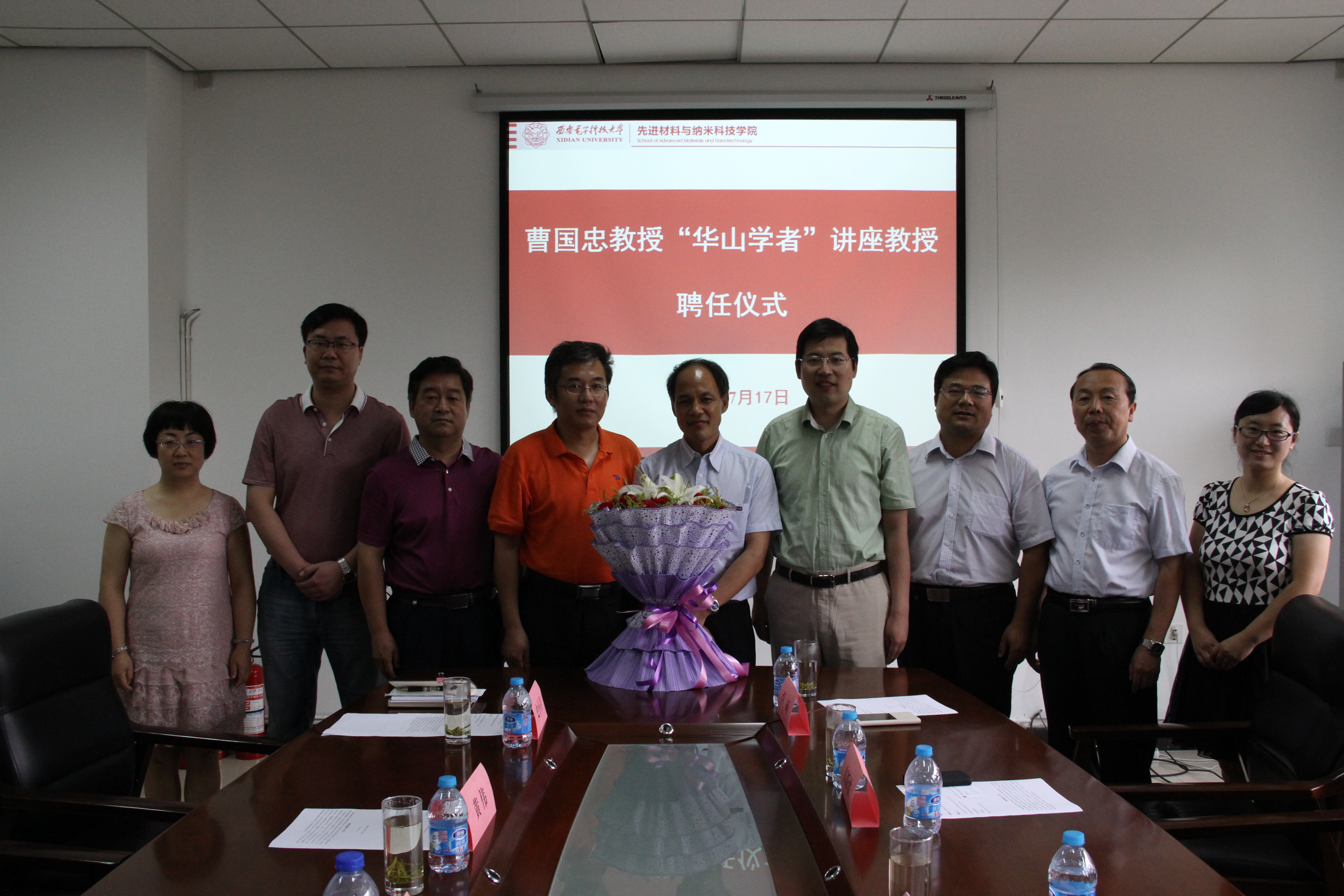 会议室进行,曹国忠正式受聘担任学校“华山学者”讲座教授。校长助理高新波出席聘任仪式并为曹国忠颁发聘任证书。