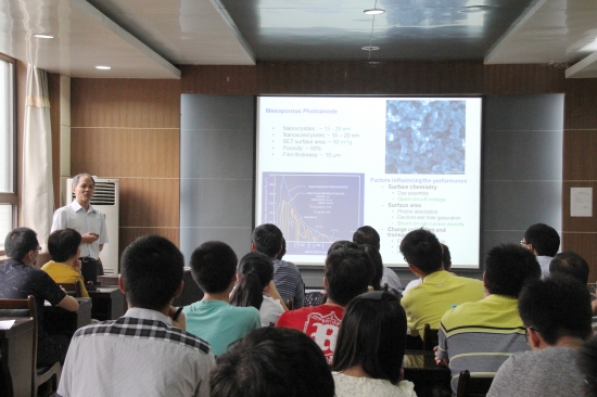 曹国忠教授介绍了其课题组在纳米材料应用于能源转换和存储领域的研究工作,重点从纳米结构光阳极在染料敏化与量子点敏化太阳能电池中的应用、纳米结构 电极在锂离子电池中的应用,以及多孔碳及其表面修饰在超级电容器中的应用等三个方面进行了介绍。成人电影