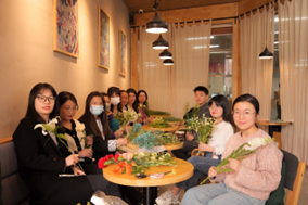 邀请专业花艺师恒心老师,以“春风有信 花开有期”为主题在南校区图书馆咖啡厅开展“鲜电下午茶”研究生主题沙龙活动。