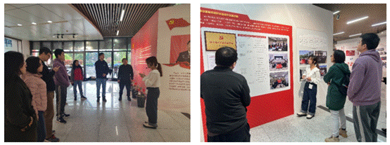 跟随着讲解员的脚步,参加人员全神贯注地聆听讲解。展览共分为九个模块,分别是“党建引领,铸就坚强保证”、“立德树人,培育时代新人”、“强基固本,提高培养质量”、“四个面向,服务国之大者”、“人才强校,构筑创新高地”、“文化浸润,厚植家国情怀”、“开放办学,激活发展动能”、“深化改革,提升治理水平”以及“以人为本,增强师生福祉”。第十二次党代会以来的这五年,是西电发展历程中极不平凡的五年。这五年学校全面贯彻党的教育方针,落实立德树人的根本任务,传承西电精神,勇往直前,在各个领域都取得了瞩目的成绩。大家仔细观看每个领域的成果,都为西电在短短五年所取得的丰硕成果感叹。应用化学系退休教师梁燕萍教授支持的国家级虚拟仿真实验项目也有幸列入五年来学校获批的国家级虚拟仿真实验项目之一,载入西电发展史册;材料科学与工程系党支部作为陕西省样板党支部成为支部学习的榜样和奋斗的目标。青年教师纷纷表示,一定要将梁老师等前辈身上这种一生拼搏、甘愿奉献的精神传承下去。