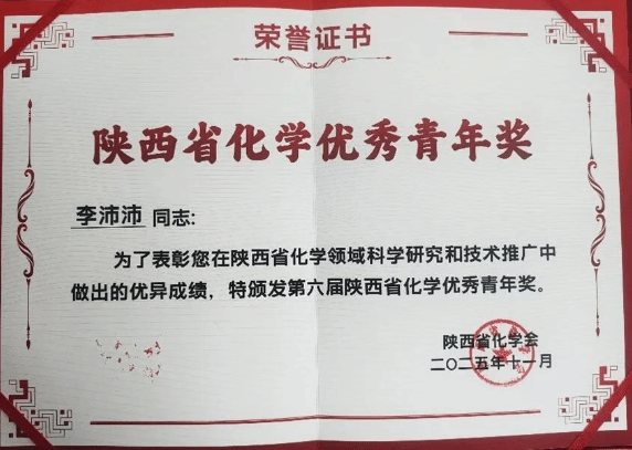 材料院教师李沛沛荣获第六届陕西省化学优秀青年奖