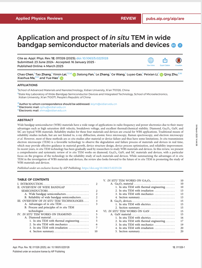 雷毅敏隶属于中国科学院院士郝跃教授研究团队,团队围绕宽禁带半导体材料与器件研究斩获了众多国际和国内一流的科研成果。在团队中,雷毅敏所从事的工作源于宽禁带半导体材料与器件在极端工况下失效机制研究的迫切需求。“传统失效表征分析手段要花很多时间去解剖和反复推敲宽禁带半导体材料与器件的失效原因,而原位TEM凭借其原子级分辨率和多场耦合加载能力,可直接实现观察电场、热场及应力耦合作用下的材料和器件动态失效全过程。”雷毅敏介绍说:“相比较传统的失效研究办法,原位TEM更像是一只可以实时捕捉变化的眼睛,能够直观、快速地捕捉失效的关键信息,从而精准探寻器件失效真相,来更好的指导提升宽禁带材料与器件的可靠性。”