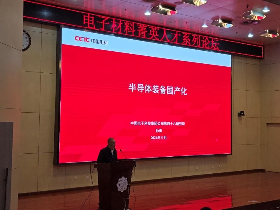 在南校区行政楼210报告厅举办了“电子材料菁英人才系列论坛”。受周益春教授邀请,中国电子科技集团48所副所长、湖南烁科晶磊半导体科技有限公司董事长孙勇结合自身深耕国产半导体装备领域的丰富研究经历,以“半导体核心装备国产化”为主题,向师生们讲述了半导体工艺与全球半导体装备发展现状、装备国产化进展及未来发展战略,为与会者带来了一场深入浅出、生动风趣的学术讲座。学院党委书记宋刚锋、班子成员李智敏,教师代表、全院研究生和本门电子材料通识课的本科生参加了报告会,报告由学院执行院长杨丽主持。