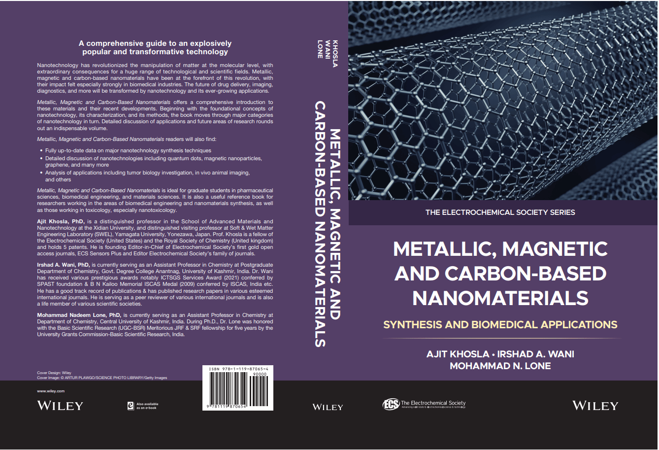 Ajit Khosla教授作为第一作者编写的专著《Metallic, Magnetic, and Carbon-Based Nanomaterials: Synthesis and Biomedical Applications》由WILEY出版。专著一共480页,约11万字,全面介绍了金属、磁性和碳基纳米材料及其最新进展。