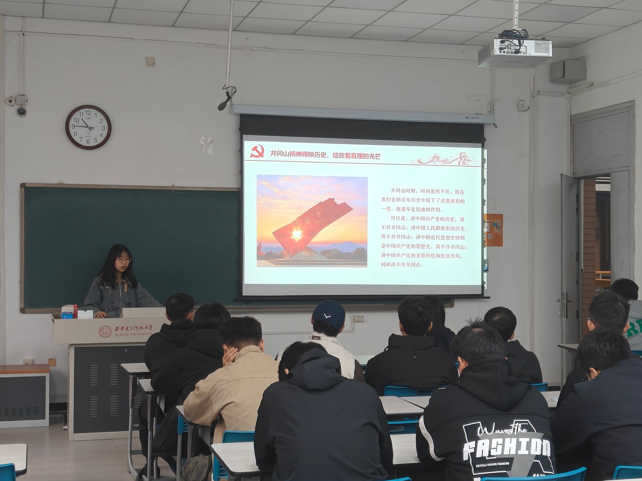随后,材料院景旭珍同学以“不忘初心,砥砺前行——牢记井冈山精神”为主题,带领大家回顾井冈山时期的革命历史与精神内涵。她讲到,井冈山精神是中国共产党人宝贵的精神财富,体现了我们党坚定信念、艰苦奋斗、实事求是、敢闯新路的鲜明品格。她鼓励党员同志们在学习科研中传承红色基因,以井冈山精神为指引,勇攀科学高峰,服务国家重大战略需求。
