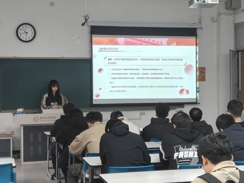 活动伊始,网信朱芸慧同学围绕“网络安全为人民,网络安全靠人民”展开宣讲。她结合当前网络空间的发展态势与典型案例,深入浅出地阐述网络安全的重要性,号召党员同志们主动学习网络安全知识,提升防范意识与防护能力。朱芸慧强调,维护网络安全不仅是技术问题,更是每一位青年党员的责任与使命。她的讲解内容详实、贴近实际,引发在场同学的广泛共鸣。