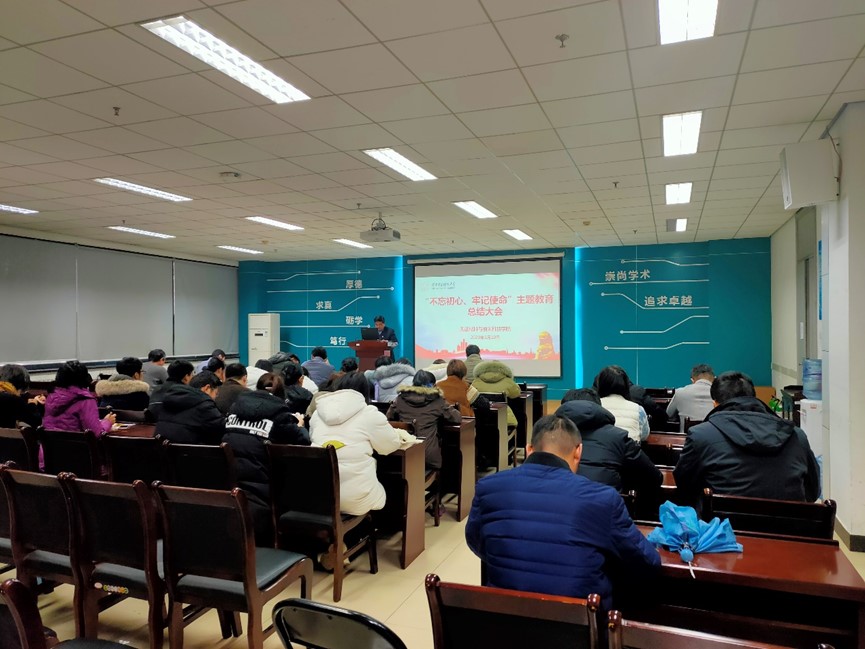 “不忘初心、牢记使命”主题教育总结大会在南校区G楼118会议室召开,学院领导班子、各支部书记、各系所负责人、部分教职工党员以及学生党员代表共30余人参加了会议,会议由学院党委副书记程远主持。