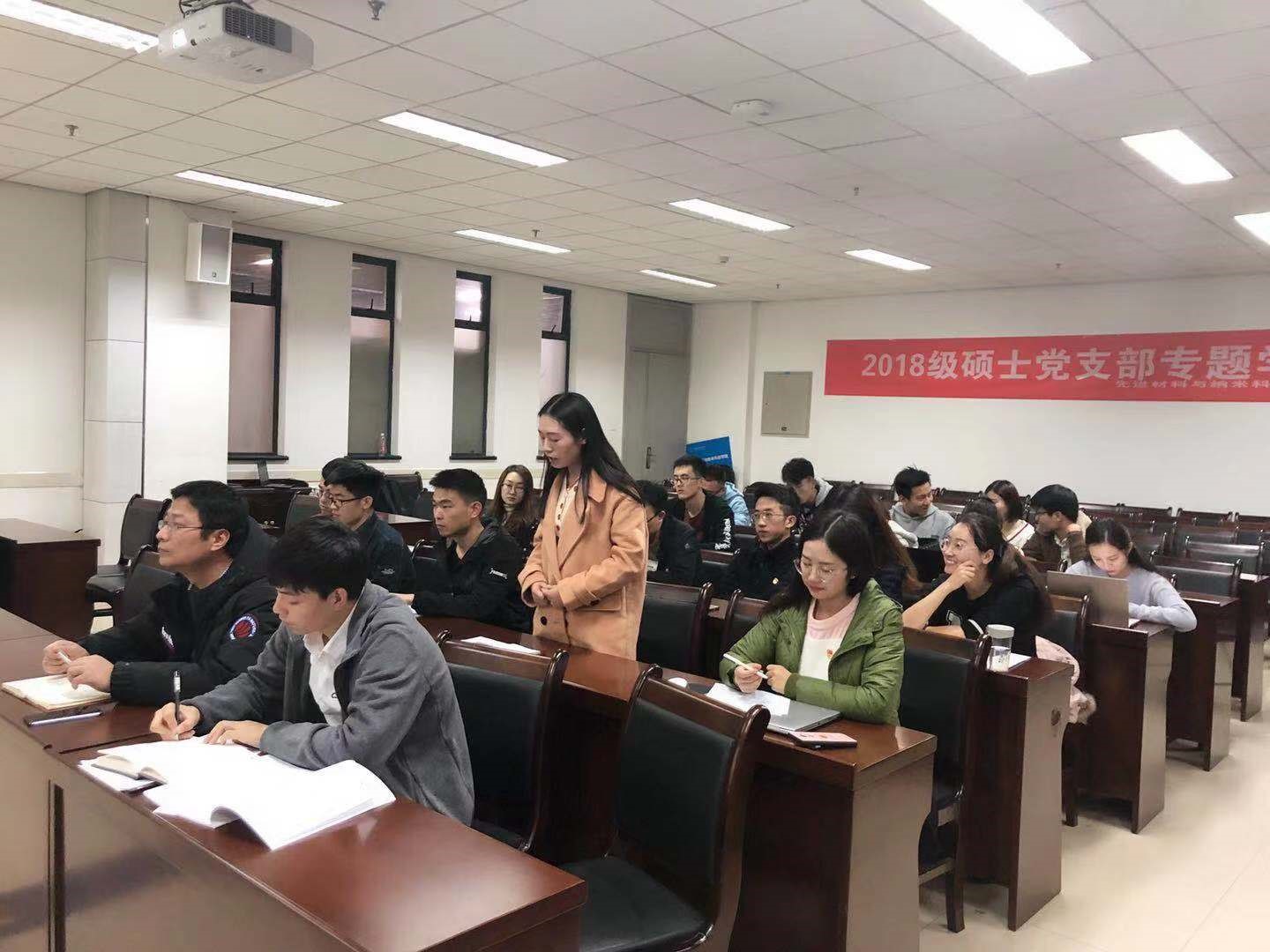 2018级硕士研究生党支部党员大会在G118会议室举行,本次会议围绕《学习贯彻全国教育大会精神》为主要议题展开,15名党员和入党积极分子参会。