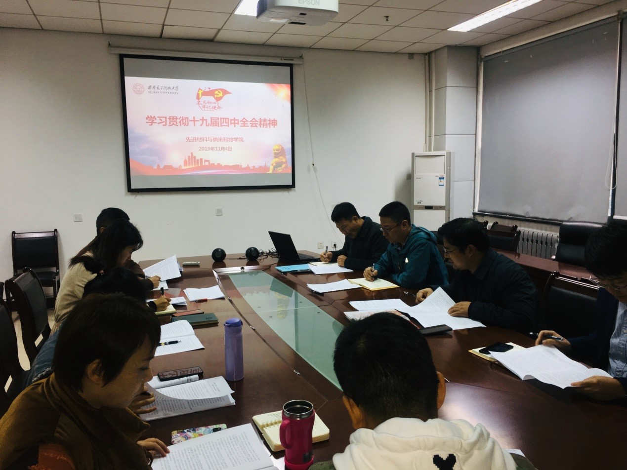 全体参会人员认真学习了《中国共产党第十九届中央委员会第四次全体会议公报》,部门负责人解读十九届四中全会精神和学校有关要求。大家一致认为党的十九届四中全会全面总结出我国国家制度和国家治理体系13个方面的显著优势,是对我们党治理国家取得的历史性成就的充分肯定。学院师生要将学习贯彻党的十九届四中全会精神作为当前的主要任务,始终坚持以习近平新时代中国特色社会主义思想为指导,增强“四个意识”、坚定“四个自信”、做到“两个维护”,不断增强坚持和完善中国特色社会主义制度、推进国家治理体系和治理能力现代化的思想自觉、政治自觉、行动自觉。