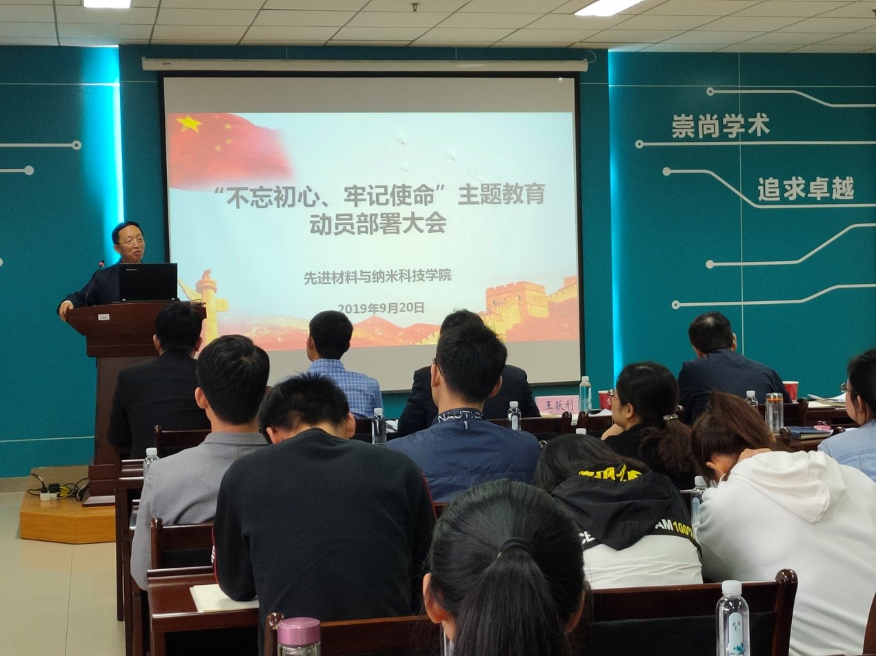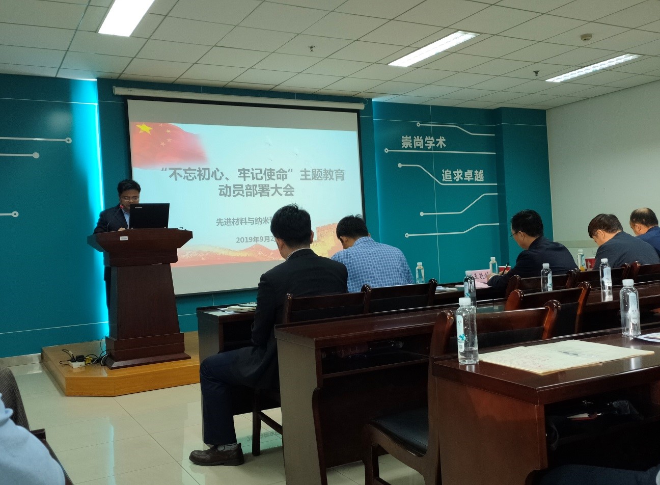 “不忘初心、牢记使命”主题教育动员部署大会在南校区G楼118会议室召开,学校“不忘初心、牢记使命”主题教育第一巡回指导组成员王跃利、王海波、张维宁,学院领导班子、各支部书记、各系所负责人、全体教职工党员以及学生党员代表共50余人参加了会议。