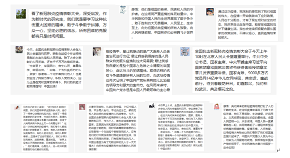 学生党员王瑞分享到,在表彰大会上对疫情的回顾中,再次感受到疫情期间全国上下万众一心,众志成城,与疫情斗争的精神,为之动容;纪宁谈到,就像习近平总书记说的那样,“广大医务人员是最美天使,是新时代最可爱的人,国家不会忘记,人民不会忘记,历史不会忘记,将永远铭刻在共和国的丰碑上”,医护人员在这场与病毒的战疫中,战斗在第一线,拼搏在第一线,医护人员得到了全社会前所未有的尊敬和认可,我们不仅要记住今天的感动,并且要对医务人员信心与尊重一直保持下去。