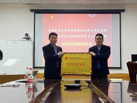 智能生物材料及应用研究所党支部书记杨如森、材料科学与工程系党支部书记李智敏分别介绍了支部党建基本情况,并表示通过党支部结对共建,以党建助力业务工作,为各项工作提供新思路和好做法,切实推进基层党建和业务工作的深度融合。最后,双方举行结对共建揭牌仪式。均表示要以此次共建结对为新起点,共同探讨推进党建工作,同时以党建促科研、教学合作发展。