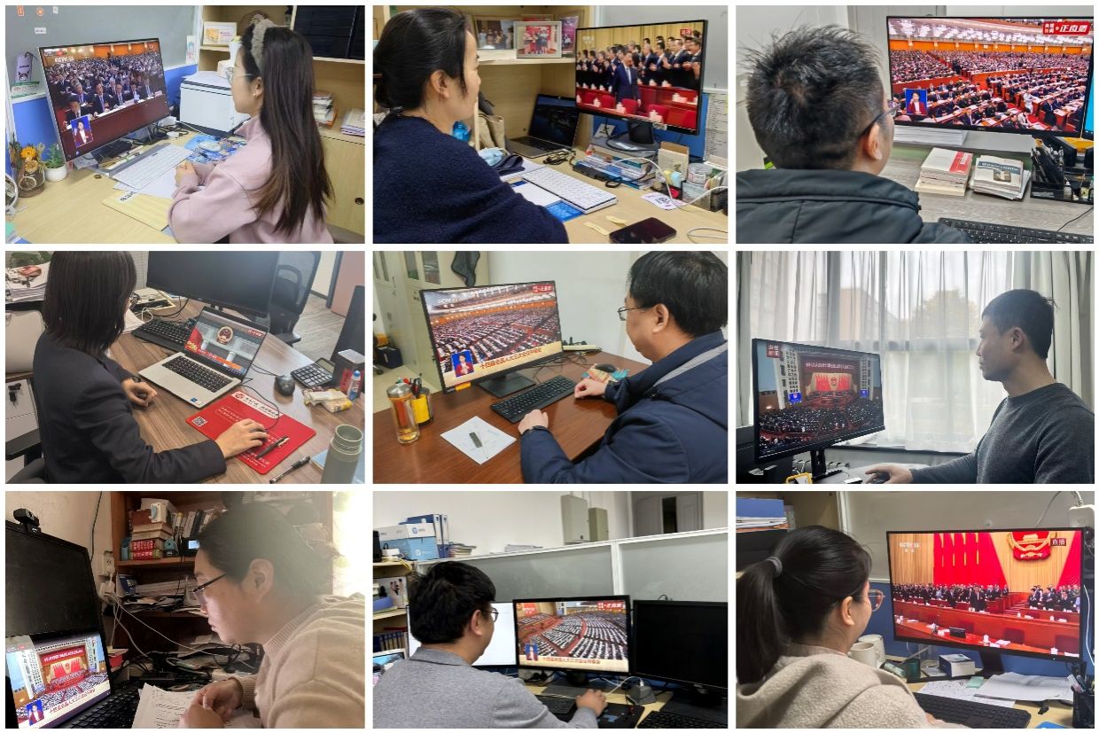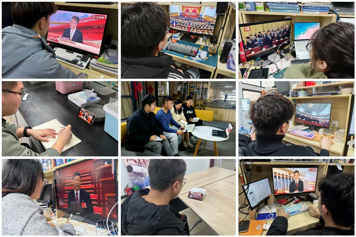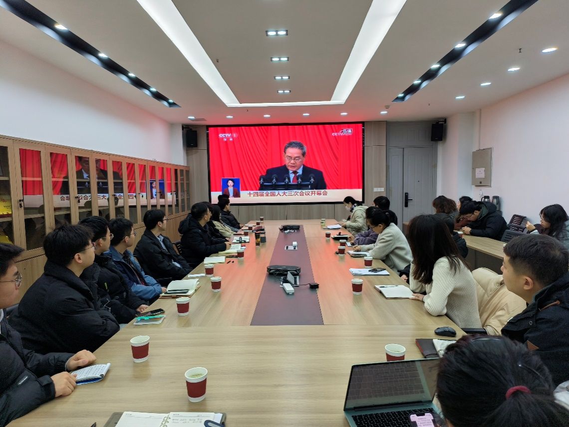 学院领导班子成员、机关管理干部、各支部师生党员代表以及预备党员代表在南校区G142会议室集体观看学习,大家全体起立奏唱国歌,认真聆听李强总理政府工作报告。直播结束后,各系所、各支部教师学生结合本职工作和学习,开展热烈讨论和交流。