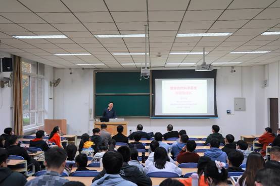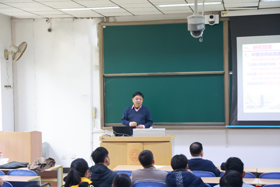 师生带来题为《超大型航天器在轨动力学控制与空间组装》的报告。邓教授主要介绍了其课题组在超大型航天器在轨运行、空间组装两个阶段的动力学与控制方面研究进展。针对超大型航天器在轨运行阶段、空间组装阶段等一系列问题,提出了超大型航天器的轨道-姿态-结构全耦合动力学建模方法、组装模块设计、动力学建模、轨迹规划与轨迹跟踪控制的初步探索。报告从宏大的航天背景入手,辅之以邓教授深入浅出的讲解,为在场师生带来了一场精彩的学术盛宴。