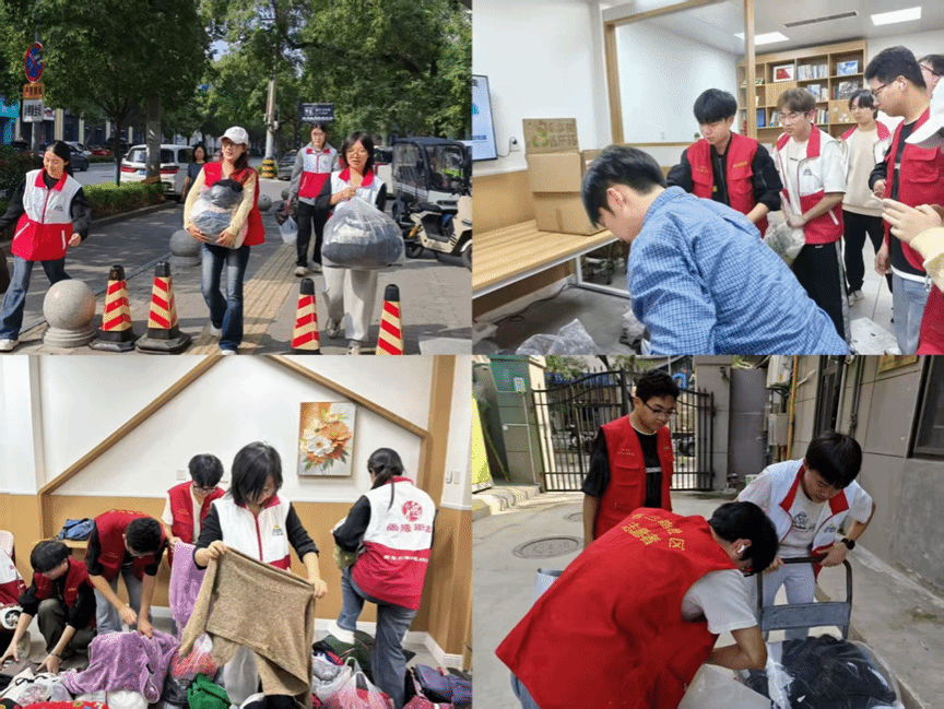 活动现场,同学们化身“爱心使者”,分别前往家属院不同楼层,向居民介绍旧衣捐赠的意义和流程,收集大家的闲置旧衣。大家认真整理每一件衣物,按照季节、款式、新旧程度分类打包,确保捐赠物资能够精准对接受助者需求。居民们积极响应,纷纷将家中闲置的衣物、被褥等物品送到捐赠点,用爱心传递温暖。