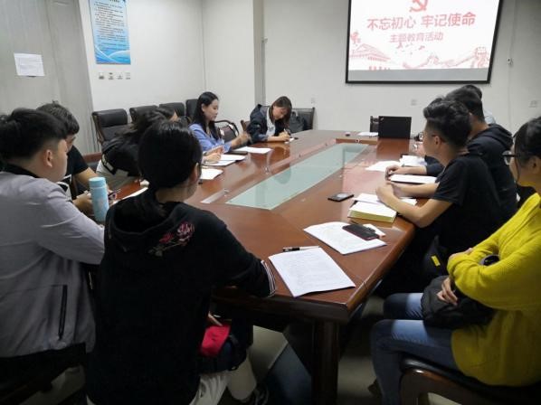 2019级硕士研究生党支部大会在G119顺利举行,本次会议围绕“不忘初心、牢记使命”主题教育展开,2019级硕士研究生辅导员杜敏老师及全体党员参加了本次会议。