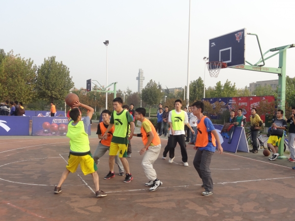 大一新生篮球队与生命科学技术学院篮球队在北操场进行了“安踏杯”新生篮球赛。
