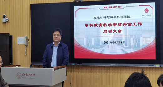 首先,施建章详细介绍了教育部新一轮本科教育教学审核评估实施方案的主要内容,并从新一轮审核评估的背景和意义、评估指标体系的变化和最新要求、工作进度和安排以及组织机构等方面做了详细的介绍。他指出,新一轮审核评估是根据新时代高等教育发展的需要和国家总体战略布局而进行的一项系统性的教育教学大检查,是上一轮审核评估的延续、改进和升级。我们需要牢固树立人才培养中心地位和本科教育教学核心地位,不断深化教育教学体制改革,以评估为抓手,“以评促建、以评促改、以评促管、以评促强”,坚持内涵发展、特色发展、创新发展,不断追求卓越,努力建设专业特色鲜明、比较优势明显、具有中国特色的一流本科教育。