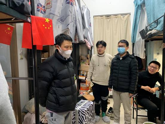 卢硕、杨如森、高宝铜、施建章分别来到海棠5号楼、8号楼、竹园4号楼、丁香11号楼学生宿舍,给因疫情防控要求不能“出门”的学子送去新年的祝福。他们与学生热情交谈,仔细询问学生疫情期间的思想、学习、生活等方面存在的困难,认真倾听学生心中不解的疑惑,耐心回答学生提出的问题,并嘱咐学生给家中牵挂的父母送上新年的问候。最后,他们也向同学们提出了希望,即希望同学们配合学校各项疫情防控工作、遵守各项疫情防控规定,在封控管理中规划好学习生活,不消极、不懈怠,不断提升个人的精神修养、知识储备、身心素质,静待疫情凛冬过,百花报春来。