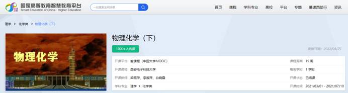 梁燕萍教授负责主讲的《物理化学》(上、下)课程上线国家智慧高教平台,也成为成人电影