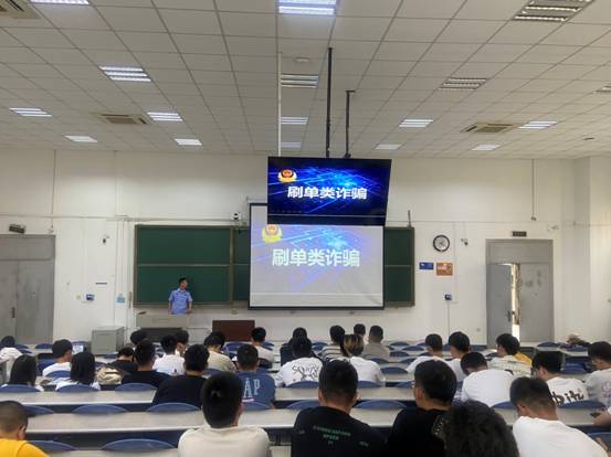 接下来,兴隆派出所蔡警官为研究生新生开展了反诈防骗教育。他围绕常见的刷单类诈骗、虚假购物、冒充客服、冒充好友、冒充公检法、裸聊诈骗和贷款上课等诈骗类型展开,详细阐述了这些诈骗的具体实施过程和方法,蔡警官特别提醒同学们不要相信抖音点赞刷单赚钱、不要去不正规购物平台下单、不要轻易点链接、不要随意填写自己的信息、不要给陌生人转账等。
