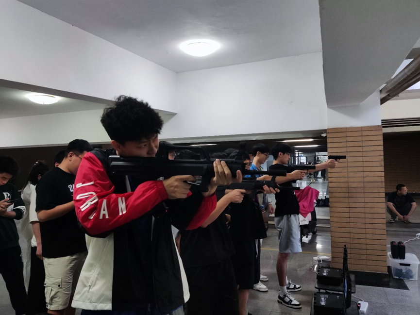 联合武装部在南校区组织学生开展电子激光打靶活动。学院党委书记宋刚锋、副书记陈刚以及30余名学生参与活动。