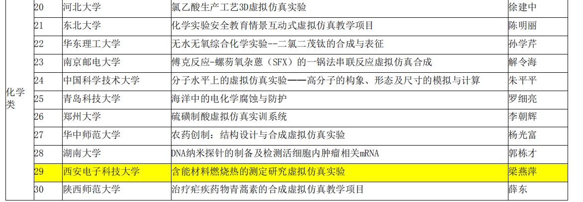 梁燕萍教授团队申报的“含能材料燃烧热的测定研究虚拟仿真实验”获批,这是学校2018年度国家虚拟仿真实验教学项目获批的两个项目之一。