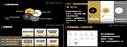 此外,会议特别邀请了第五届“互联网+”大赛国家级银奖项目-“为心脏起搏器高效供电的纳米发电机”项目负责人,2019级博士生焦婧一同学从“互联网+”比赛情况、纳新动力项目介绍、总结等三个方面分享参赛经验。在经验分享中,焦婧一同学结合获奖的参赛项目“纳心动力”的实际参赛经历,就宣讲PPT的准备、商业计划书的专项、项目介绍视频的剪辑制作以及项目路演的准备和实施等多个方面进行了非常细致的介绍和交流,帮助参赛队伍直观清晰地了解“互联网+”大赛从校赛、省赛网评、省赛路演、国赛网评、国赛项目决赛筹备等不同阶段的工作重点,同时也给各参赛团队提出了一些非常有针对性的宝贵意见和建议。