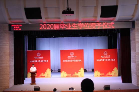 2020届毕业生学位授予仪式在南校区大学生活动中心小剧场举行,学院领导班子全体成员、二十余名教师代表、辅导员及学院全体毕业生参加了授位仪式。仪式由院党委副书记程远主持。